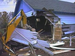 THE LAST OF THE OLD BUILDING GOES DOWN